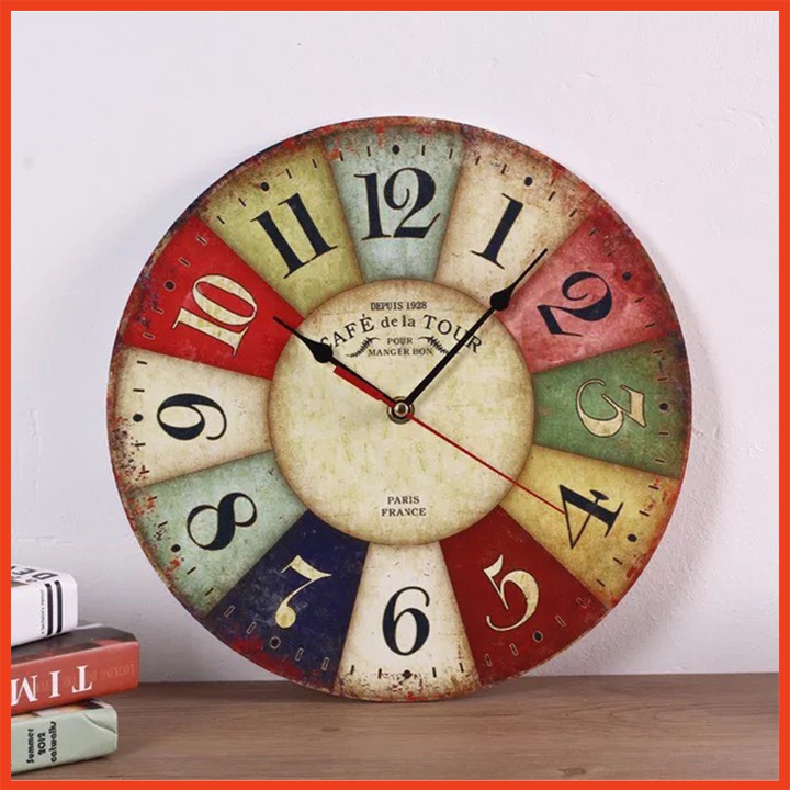 Đồng hồ treo tường cỡ lớn 30cm theo phong cách Vintage thích hợp trang trí phòng khách, phòng ngủĐồng hồ với thiết kế độc đáo, lạ mắt thích hợp trang trí trên tường nhà bạn.