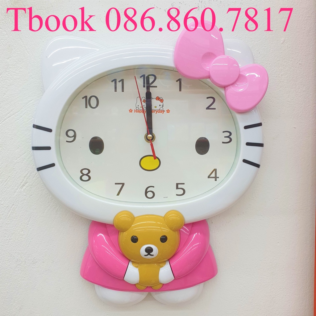Giới thiệu Đồng hồ treo tường Hello Kitty màu trắng hồng nhẹ cho bé gái SS15237 kim trôi