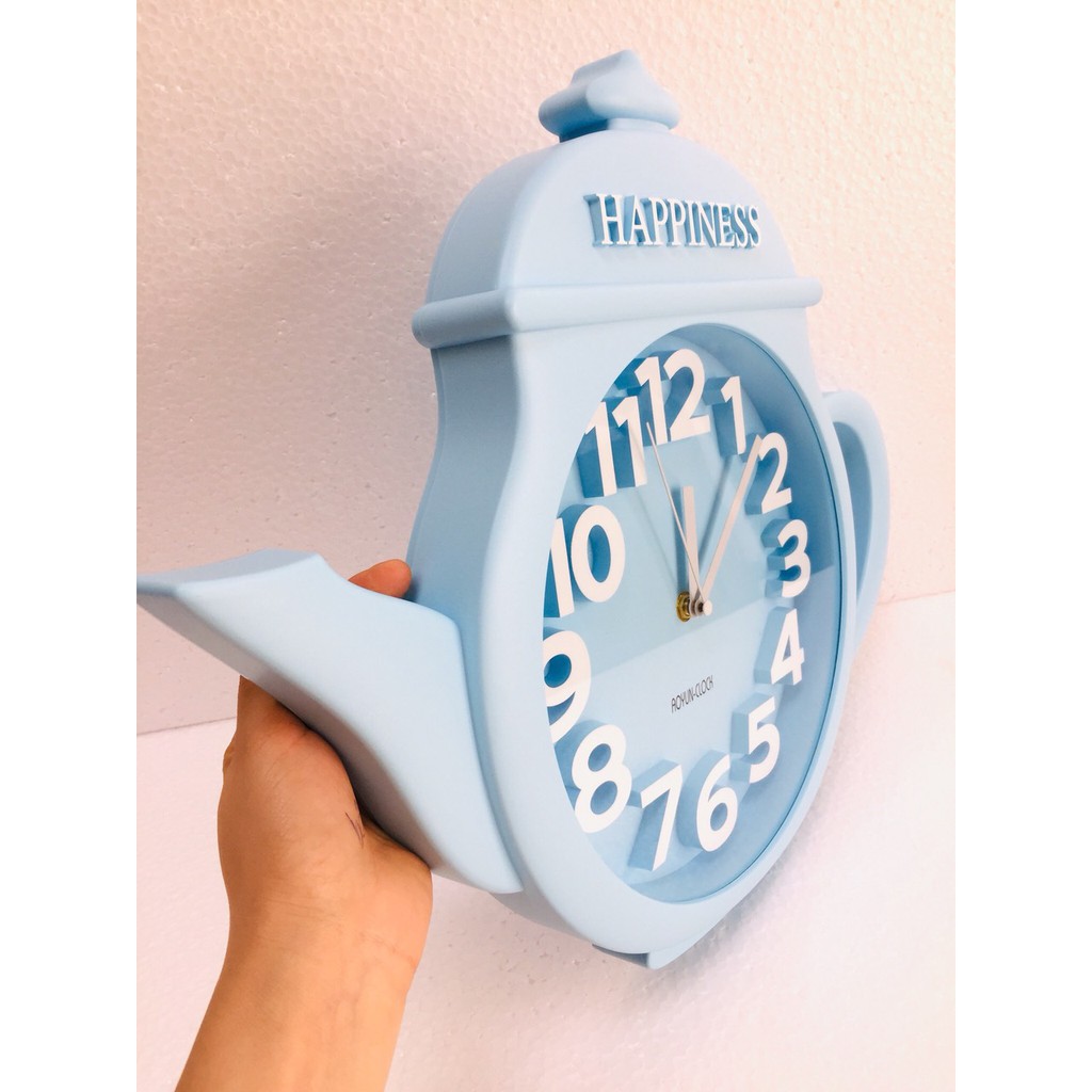 Đồng hồ treo tường hình ấm trà xanh da trời :Kiểu dáng thời trang