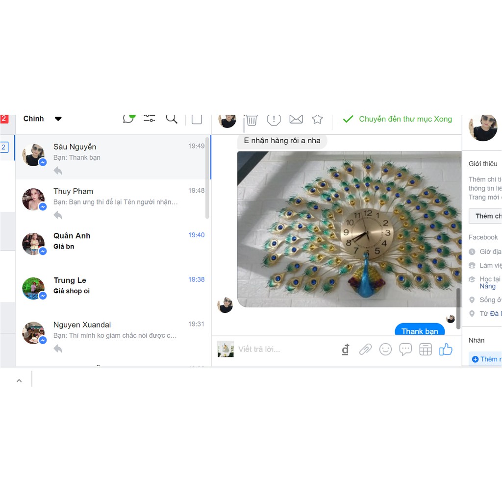 Nhà cửa & Đời sống > Trang trí nhà cửa > Đồng hồ || đồng hồ treo tường hình chim công tinh xảoCòn hàng