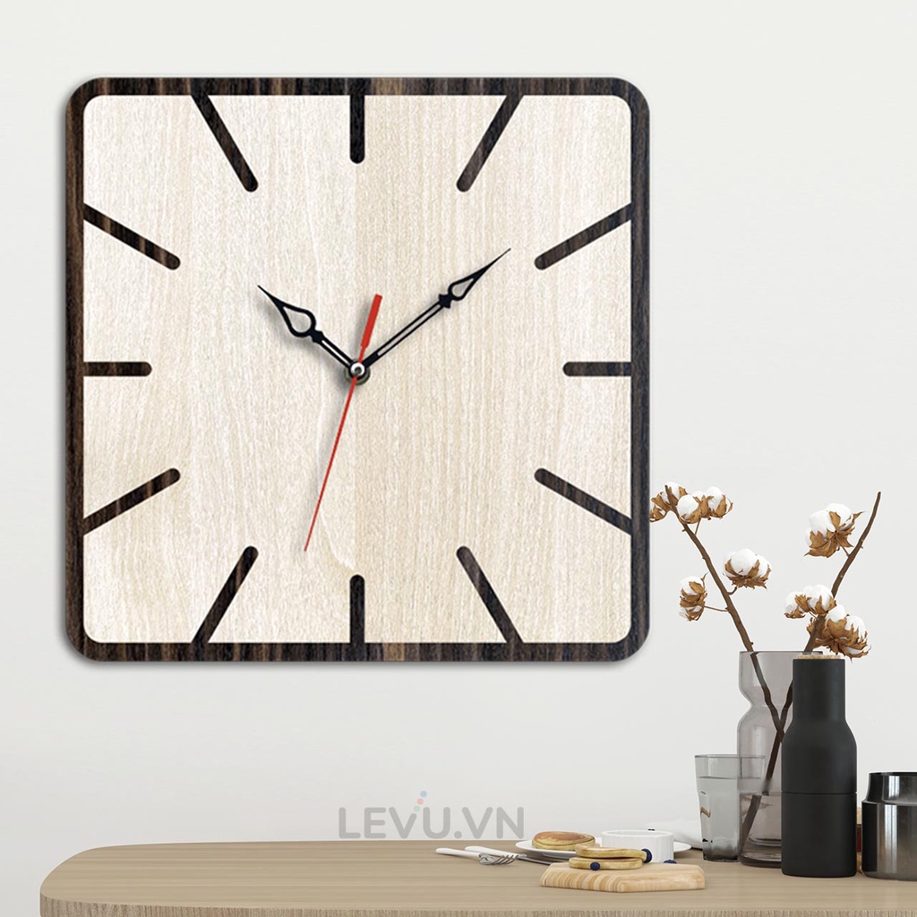 💟 Đồng hồ treo tường Hình Vuông LEVU-DH06 trang trí phòng khách sử dụng mẫu thiết kế đơn giản nhưng tạo nét nổi bật riêng bằng chất liệu gỗ cao cấp khắc laser kỹ thuật cao.✔️ Sản phẩm không đơn thuần chỉ là 1 chiếc đồng hồ treo tường để xem giờ, đó còn là 1 phụ kiện trang trí nội thất đẹp và sang trọng