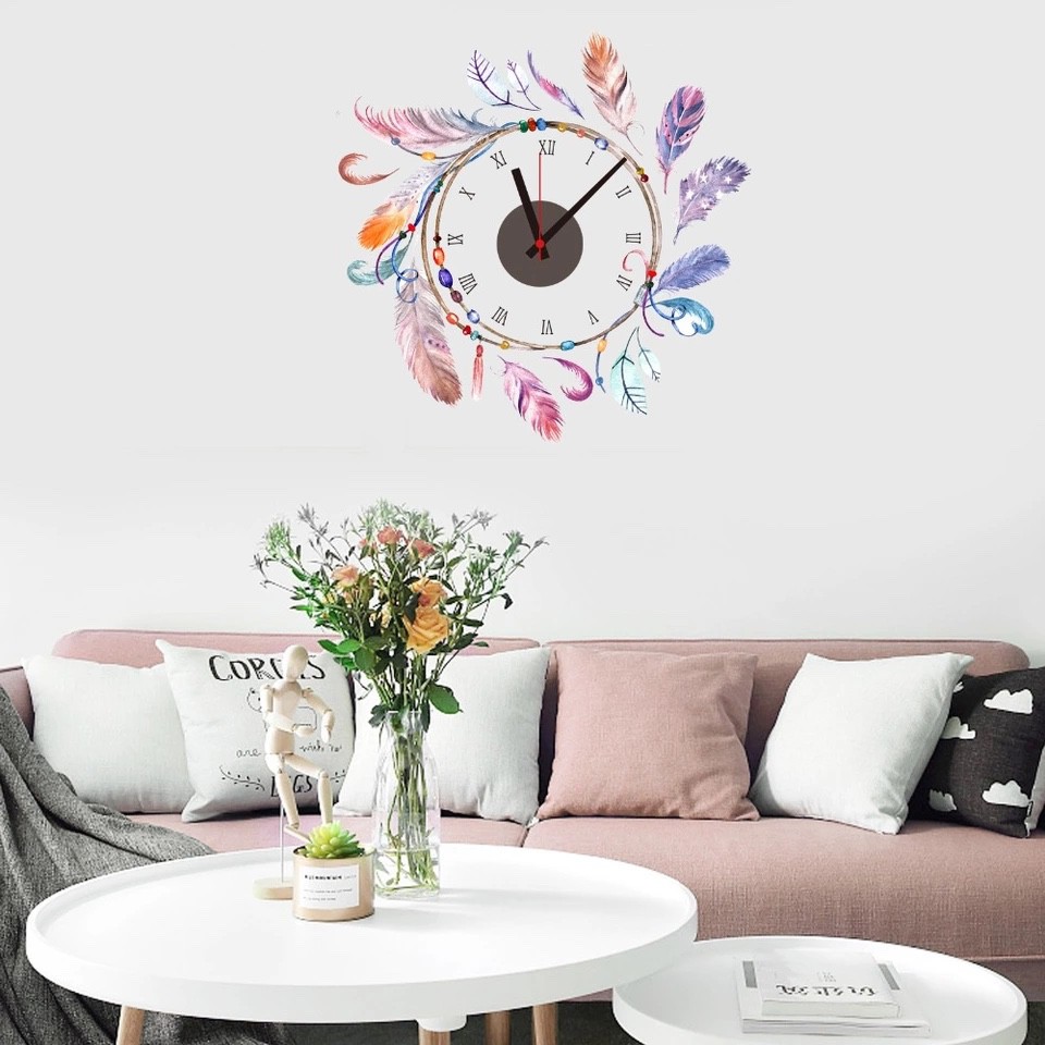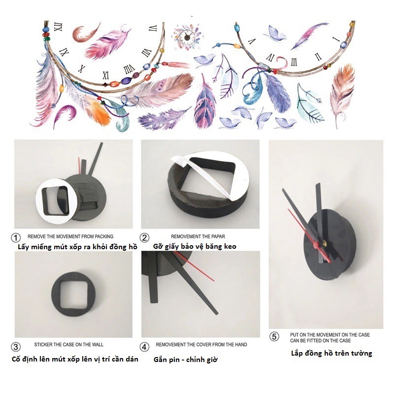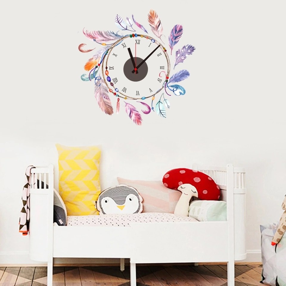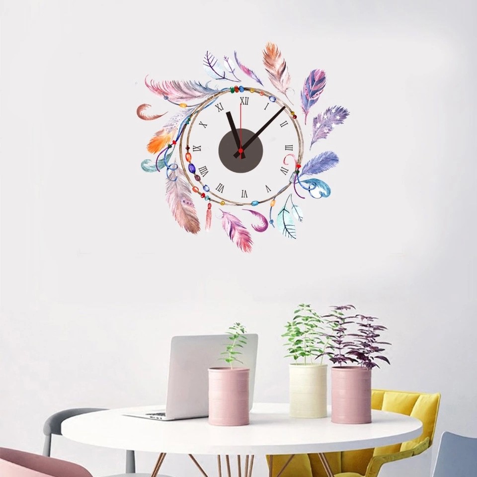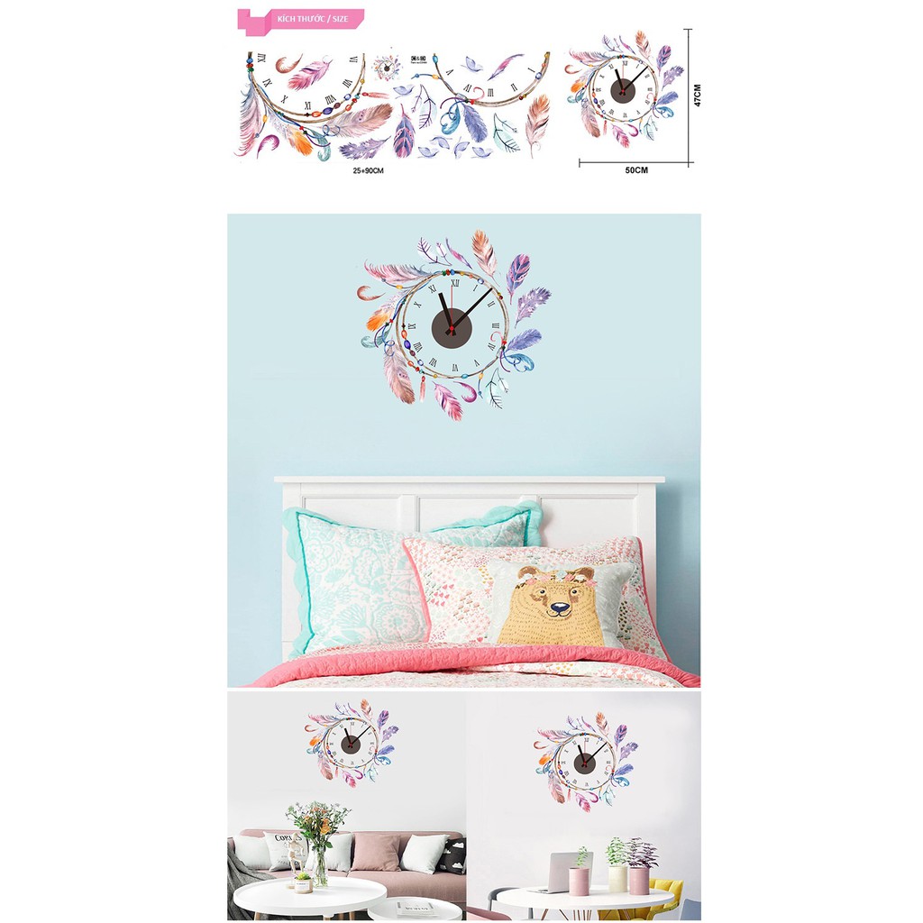Đồng hồ treo tường kèm decal trang trí nhẹ nhàng, dễ thương AmyShop với thiết kế độc đáo, decal đồng hồ mang lại cho ngôi nhà bạn một điểm nhấn mới lạ, khác biệt.Đồng hồ chạy bằng pin tiểu, xem giờ chính xác kết hợp với Decal tạo hình xung Quanh trước khi dán