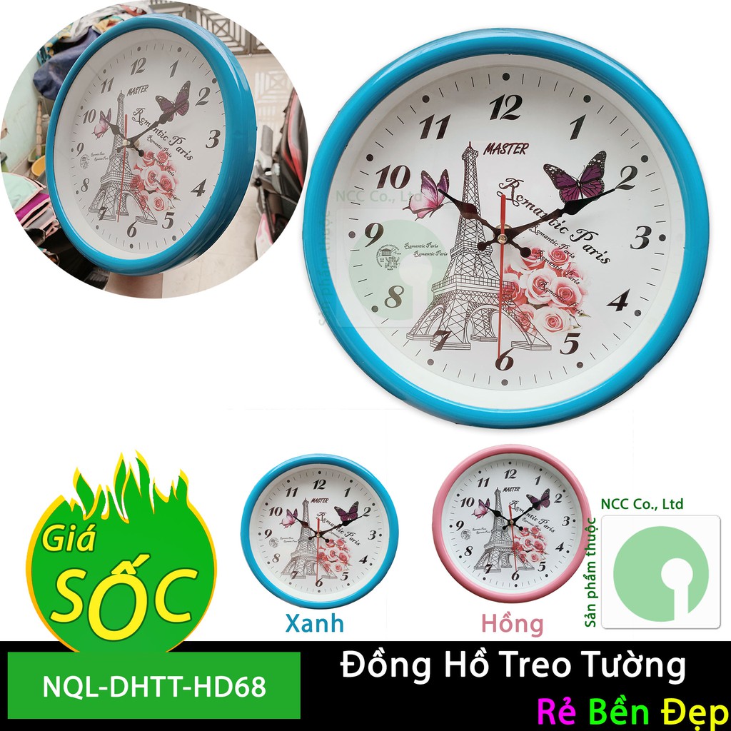 Đồng hồ treo tường kim giật giá rẻ nhỏ gọn cho gia đình, phòng trọ - NQL-DHTT-HD68 (Nhiều màu)