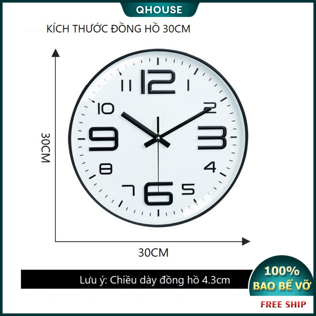 Nhà cửa & Đời sống > Trang trí nhà cửa > Đồng hồ || Đồng hồ treo tường kim trôi cao cấp , Đồng hồ trang trí decor Qhouse đường kính 30cm số cách điệu độc đáoCòn hàng