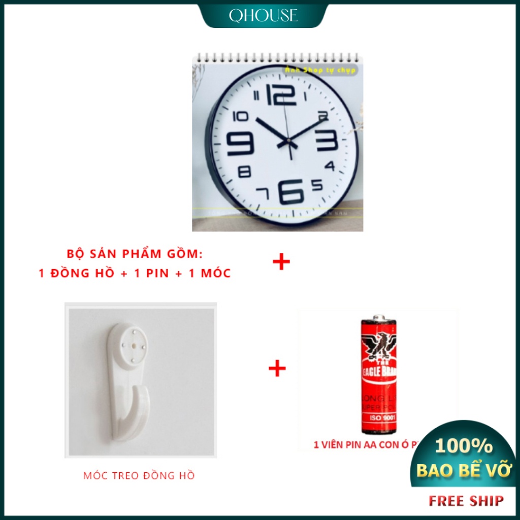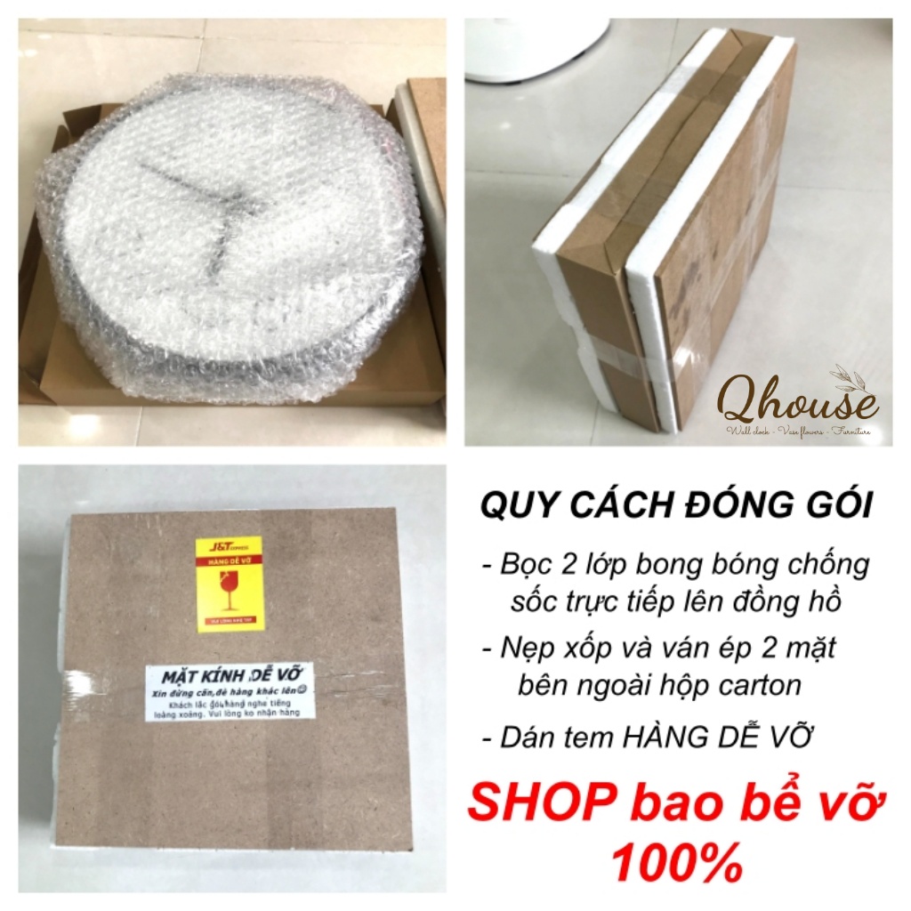 * QHOUSE cam kết với khách hàng về sản phẩm Đồng hồ treo tường trang trí Qhouse máy kim trôi: