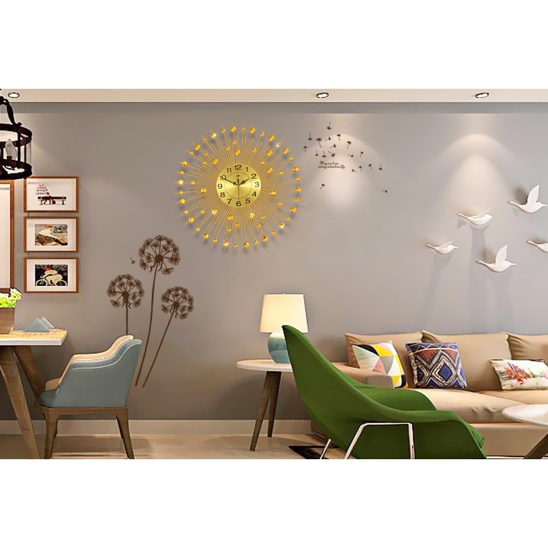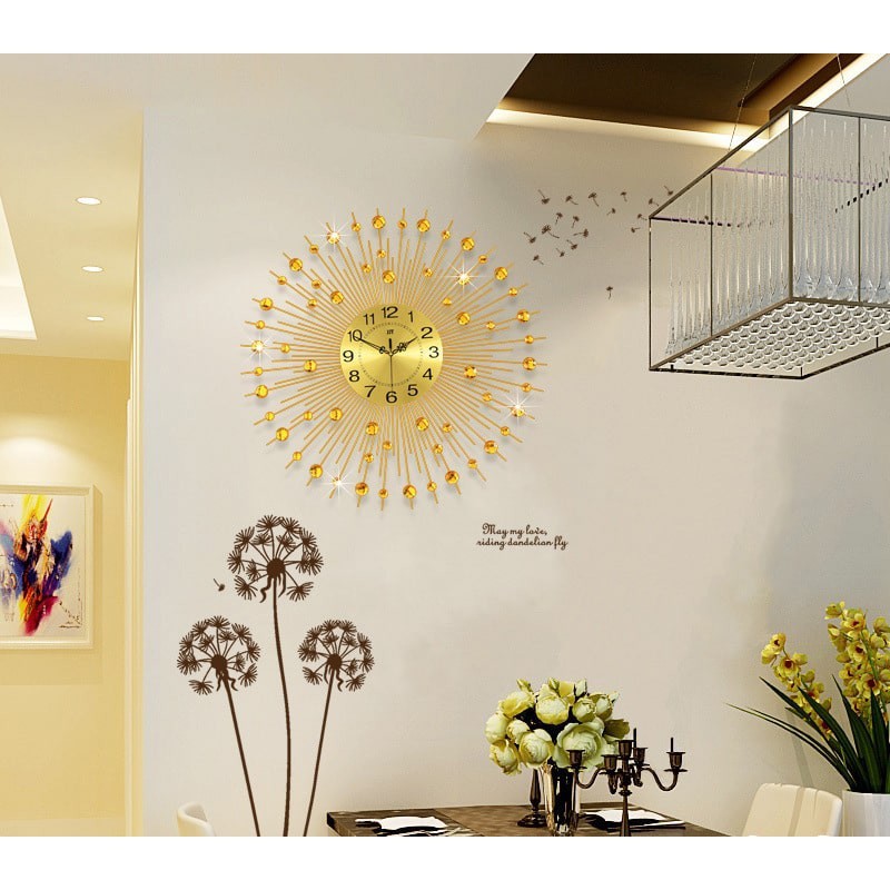 Giới thiệu Đồng hồ treo tường kim trôi trang trí phòng khách mặt trời vàng M9100 sang trọng