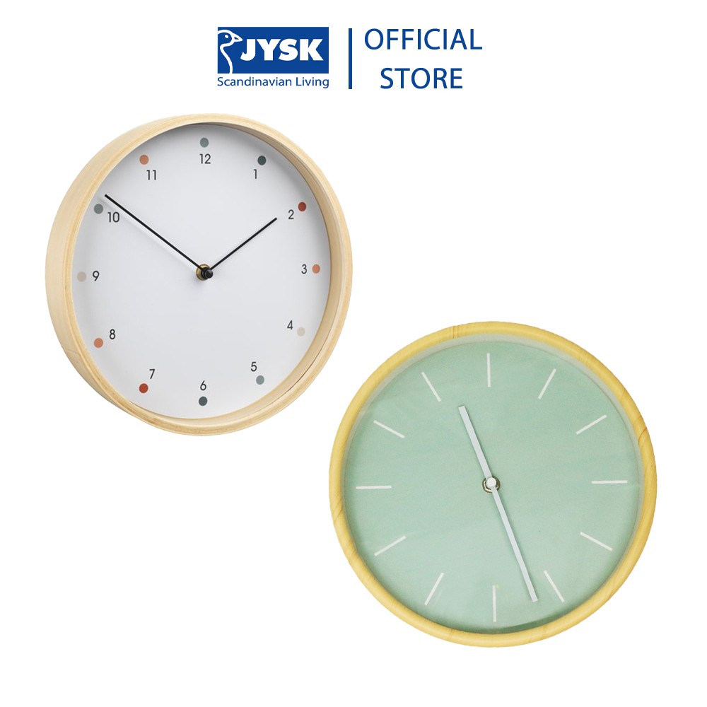 Nhà cửa & Đời sống > Trang trí nhà cửa > Đồng hồ || Đồng hồ treo tường kim trôi | JYSK Herman | nhựa màu gỗ mặt màu trắng/xanh | DK26x5cmCòn hàng
