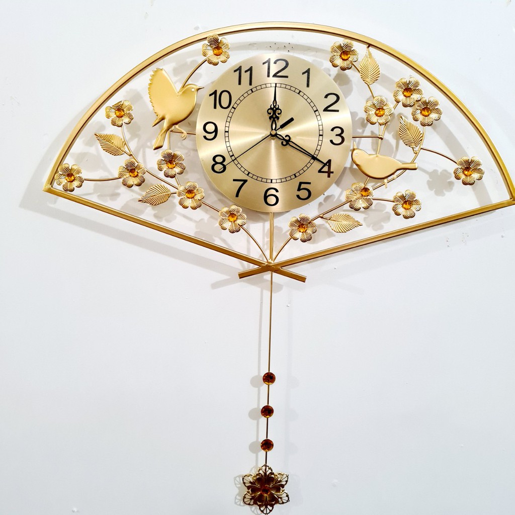 Đồng hồ treo tường kim trôi hình quạt vàng chính hãng mã 1558 phù hợp treo phòng khách, phòng ngủ