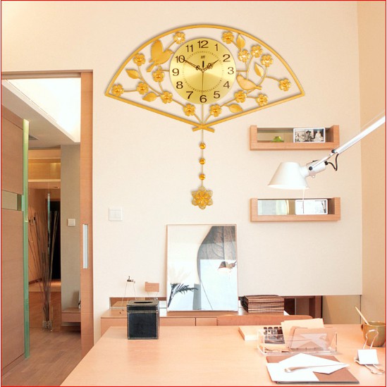 Giới thiệu Đồng hồ treo tường kim trôi hình quạt vàng chính hãng mã 1558 phù hợp treo phòng khách, phòng ngủ
