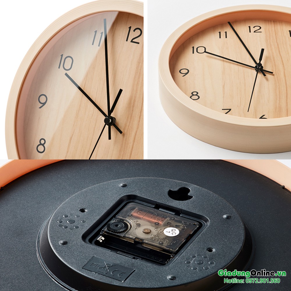 - Chất liệu: nhựa PP giả vân gỗ, mặt đồng hồ bằng kính