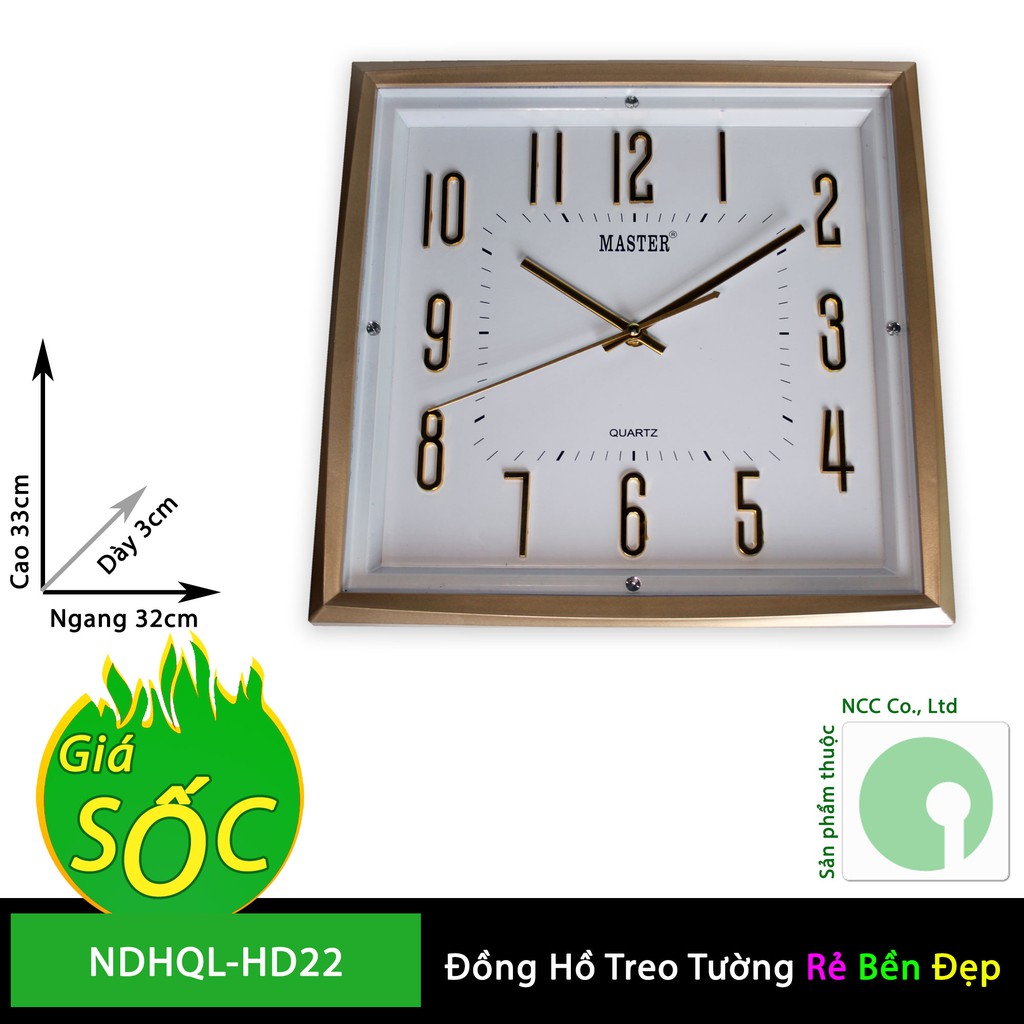 Giới thiệu Đồng hồ treo tường - mặt vuông nền trắng - NDHQL-HD22