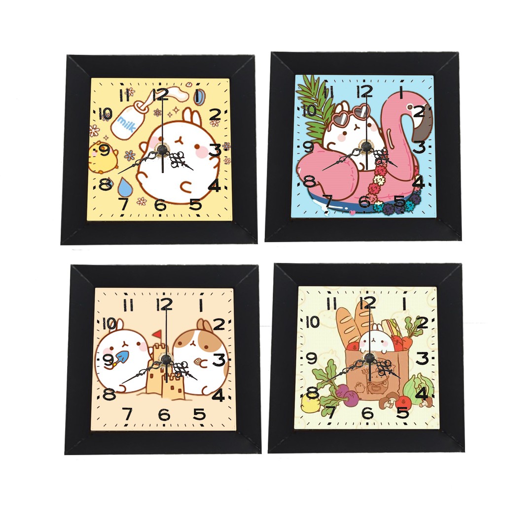 Đồng hồ treo tường molang dạng khung ảnh 13x13 cm DHTI10 đồng hồ cute dễ thương