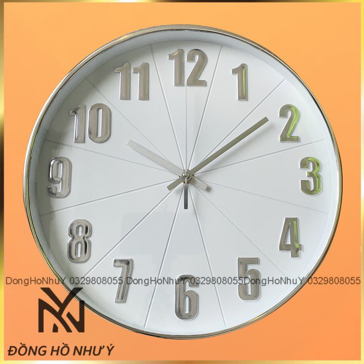 Đồng hồ treo tường MÚI CAM - MÀU TRẮNG CHỮ BẠC phong cách trẻ trung kích thước 30 cm