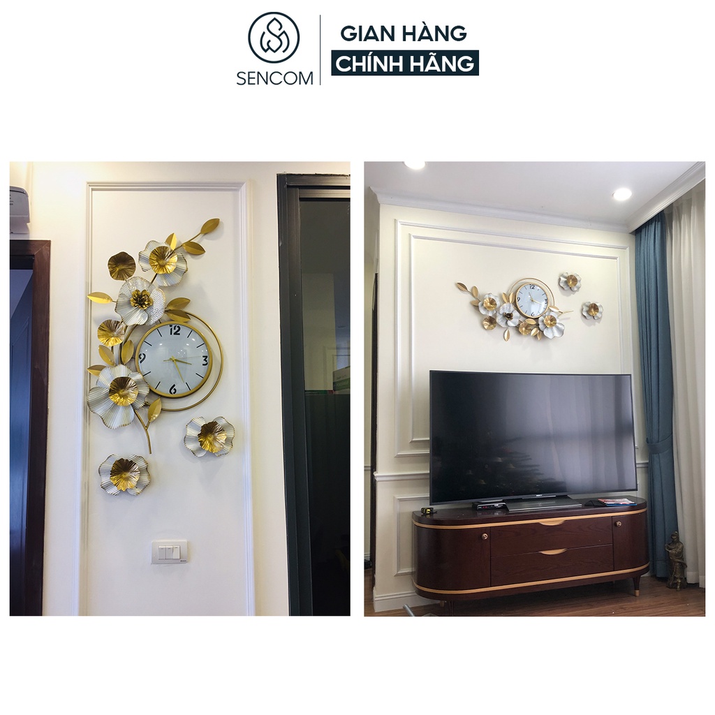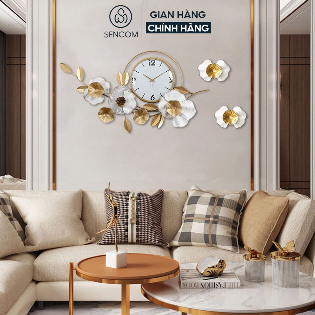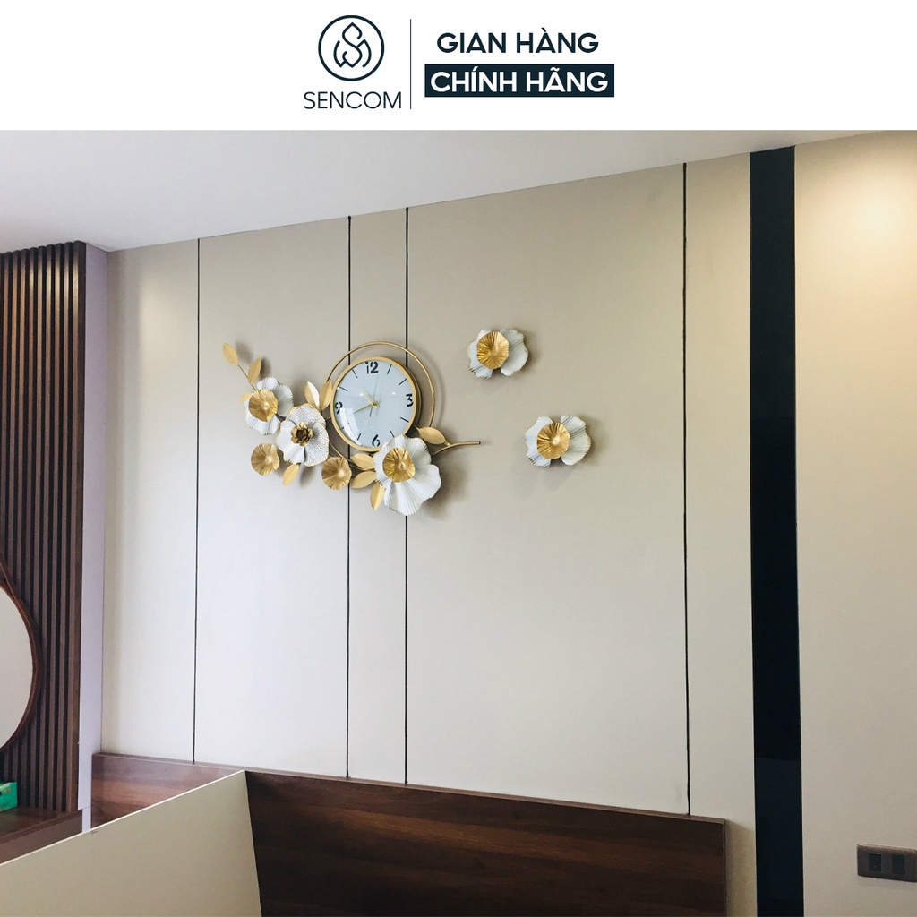 Đồng hồ treo tường nghệ thuật SENCOM hình hoa phong cách Bắc Âu decor trang trí nhà cửa mã 2106
