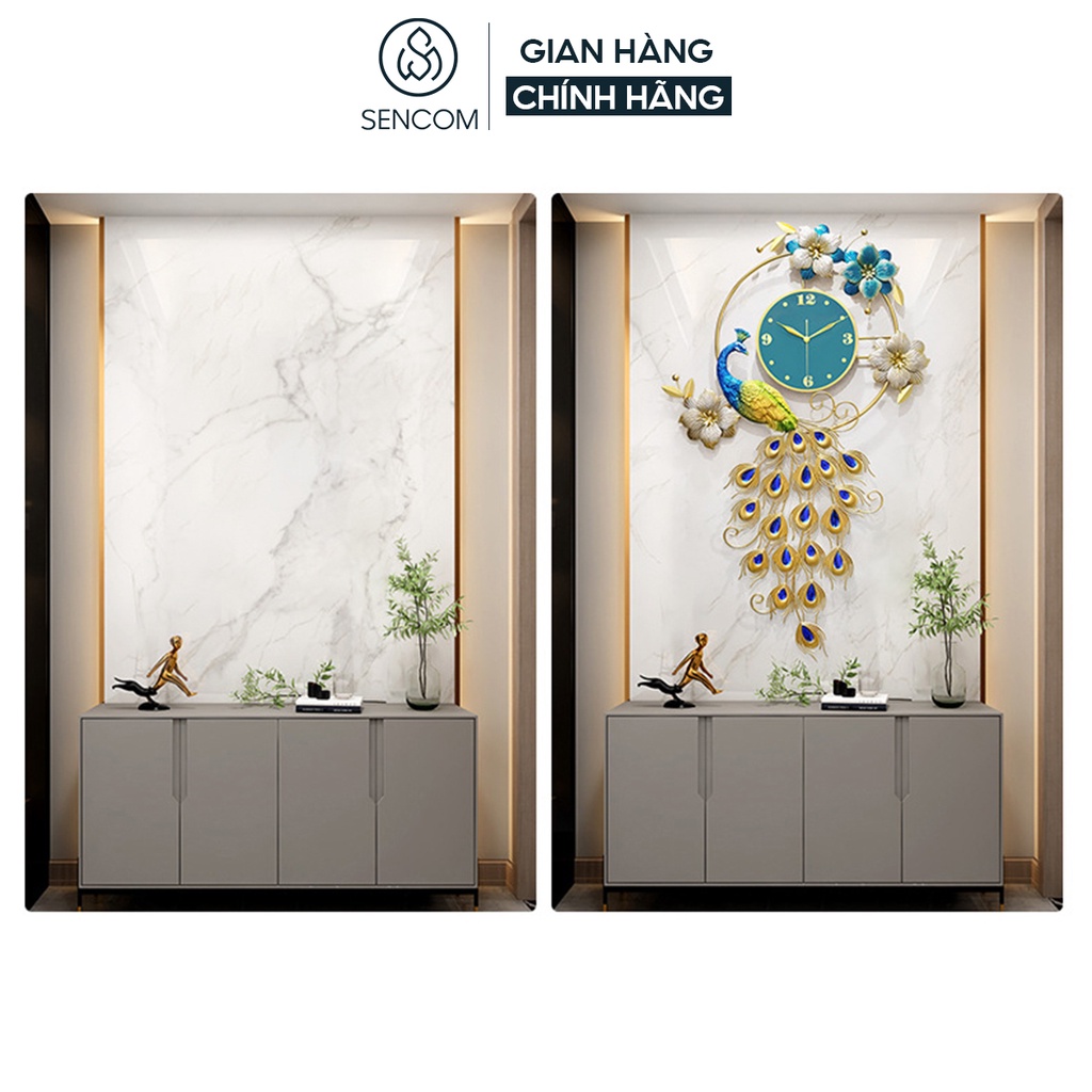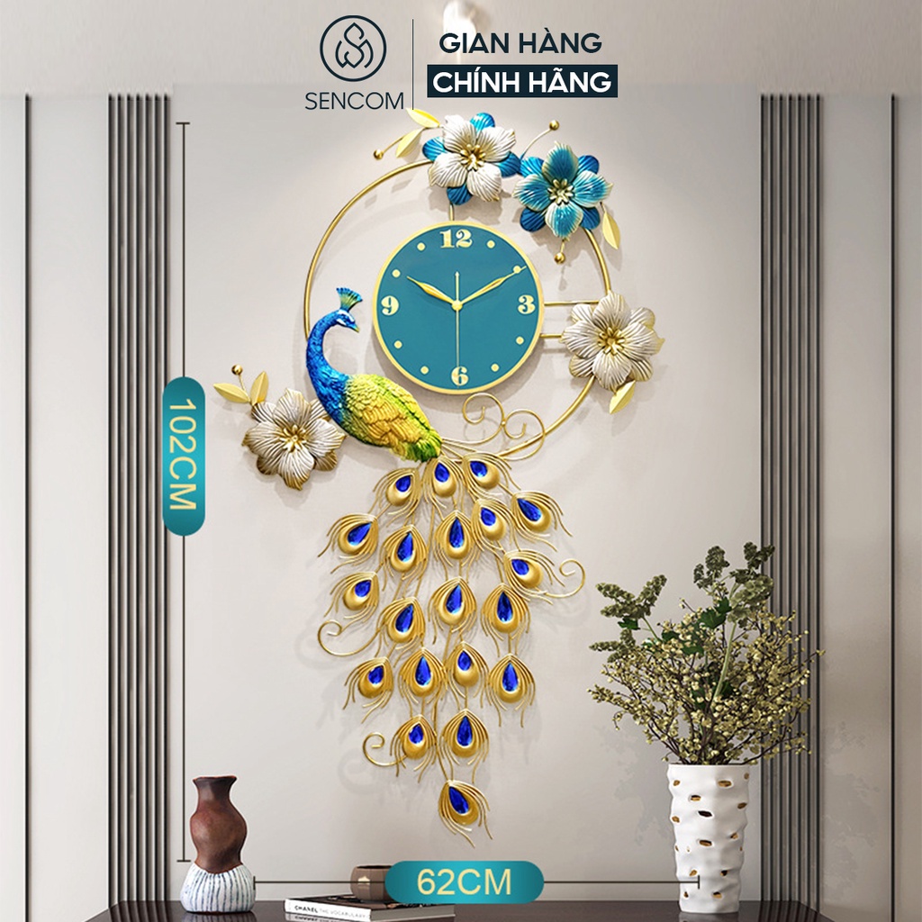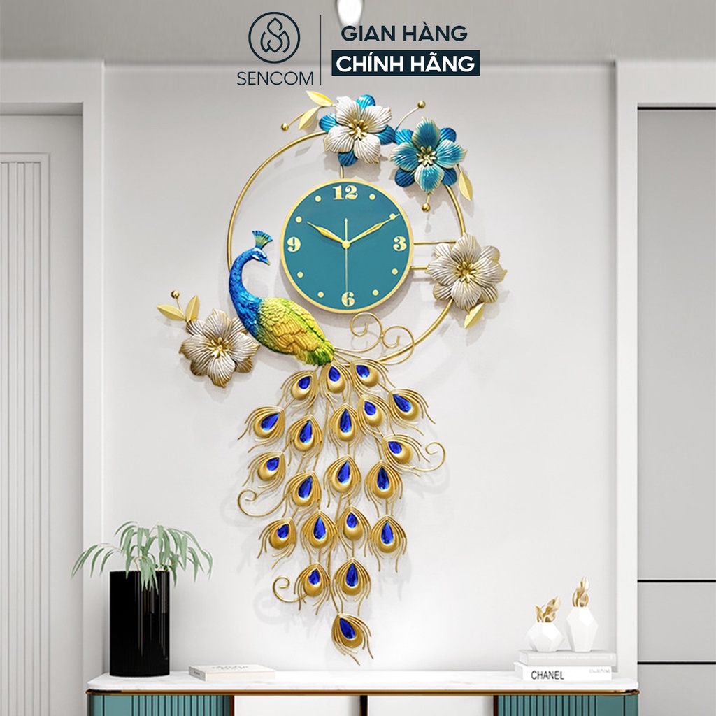 Đồng hồ treo tường nghệ thuật SENCOM hình con công decor trang trí nhà cửa mã 2920
