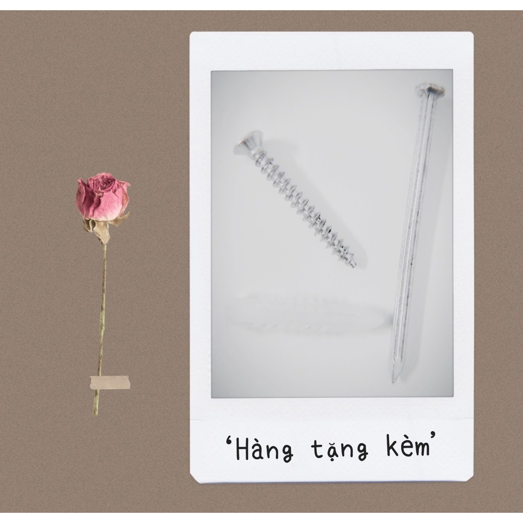 - Đinh chuyên dụng chỉ cẩn đóng trực tiếp lên vị trí cần treo.(Có kèm theo vít nở và ốc vít nếu Bạn muốn sử dụng cách treo bằng khoan bắt vít treo)