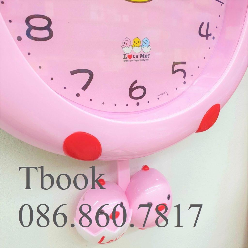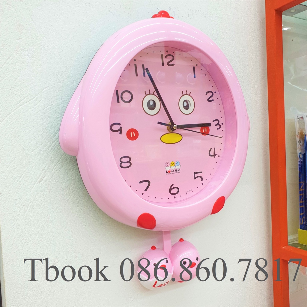 Đồng hồ treo tường quả lắc hình con gà màu hồng xinh xắn cho bé kim trôi