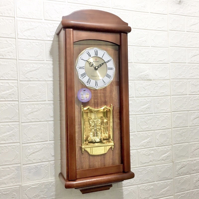 Đồng hồ treo tường quả lắc xoay KASHI 690 vỏ gỗ có nhạc chuông ( ship hỏa tốc )
