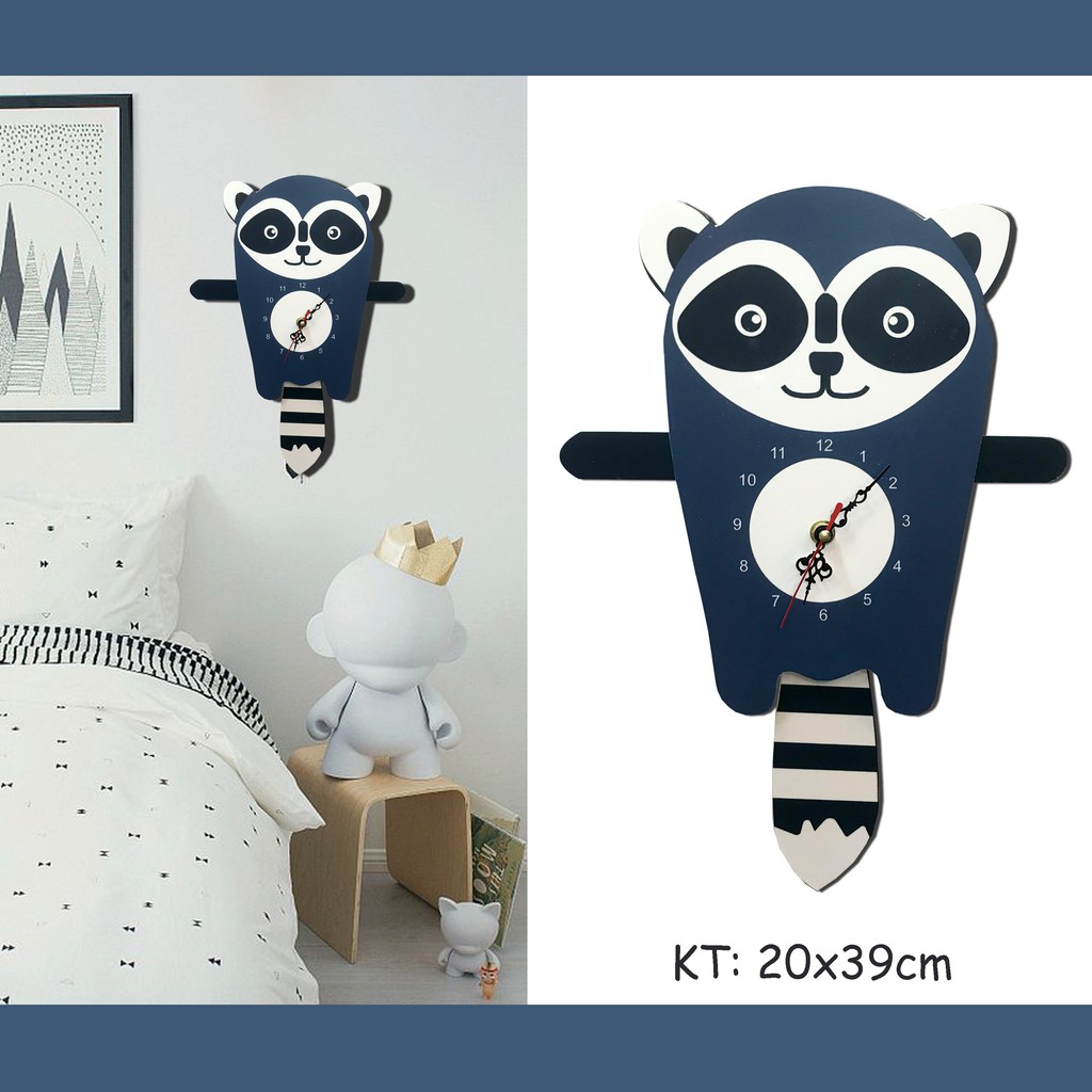 Nhà cửa & Đời sống > Trang trí nhà cửa > Đồng hồ || ĐỒNG HỒ TREO TƯỜNG RACOON GẤU MÈO trang trí phòng cho béCòn hàng