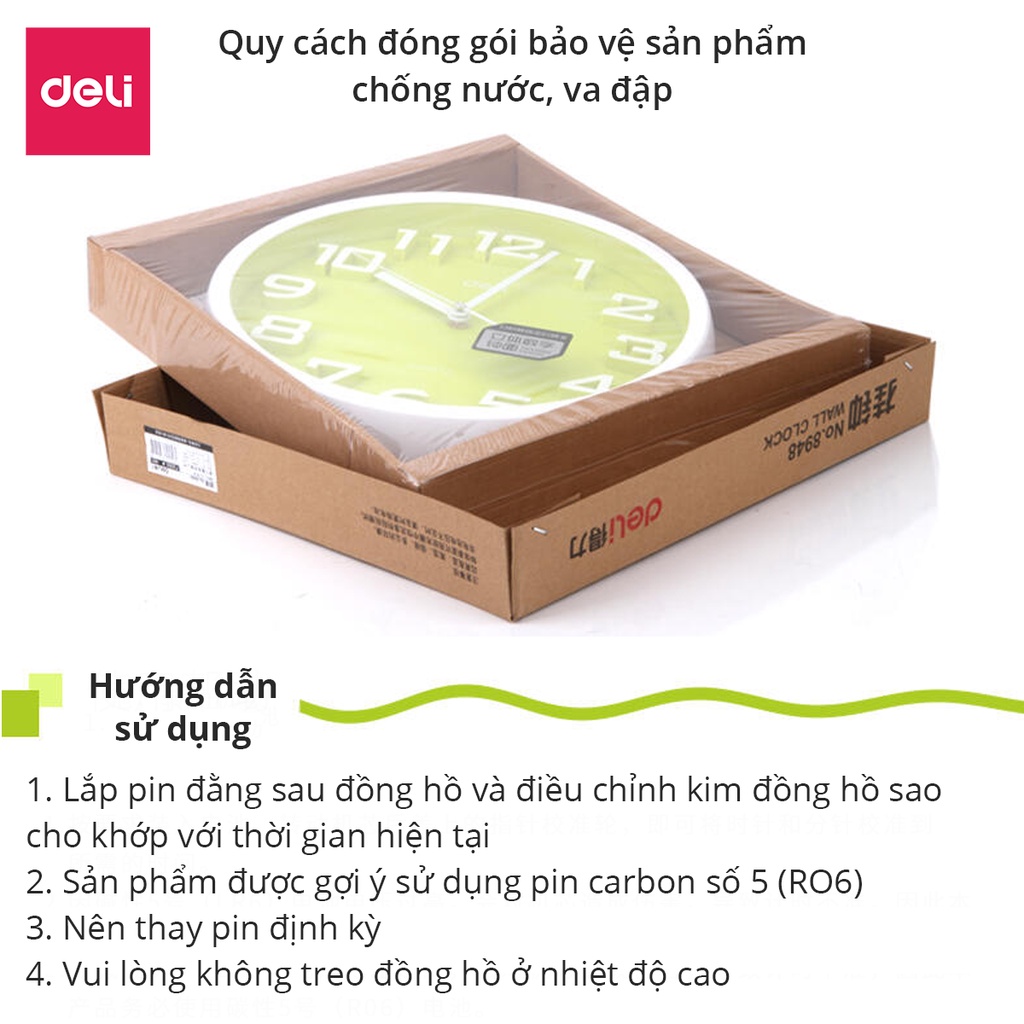 Nhà cửa & Đời sống > Trang trí nhà cửa > Đồng hồ || Đồng hồ treo tường số nổi quartz kim trôi Deli - Bảo hành 12 tháng lỗi NSX 1 đổi 1 - 8948Còn hàng
