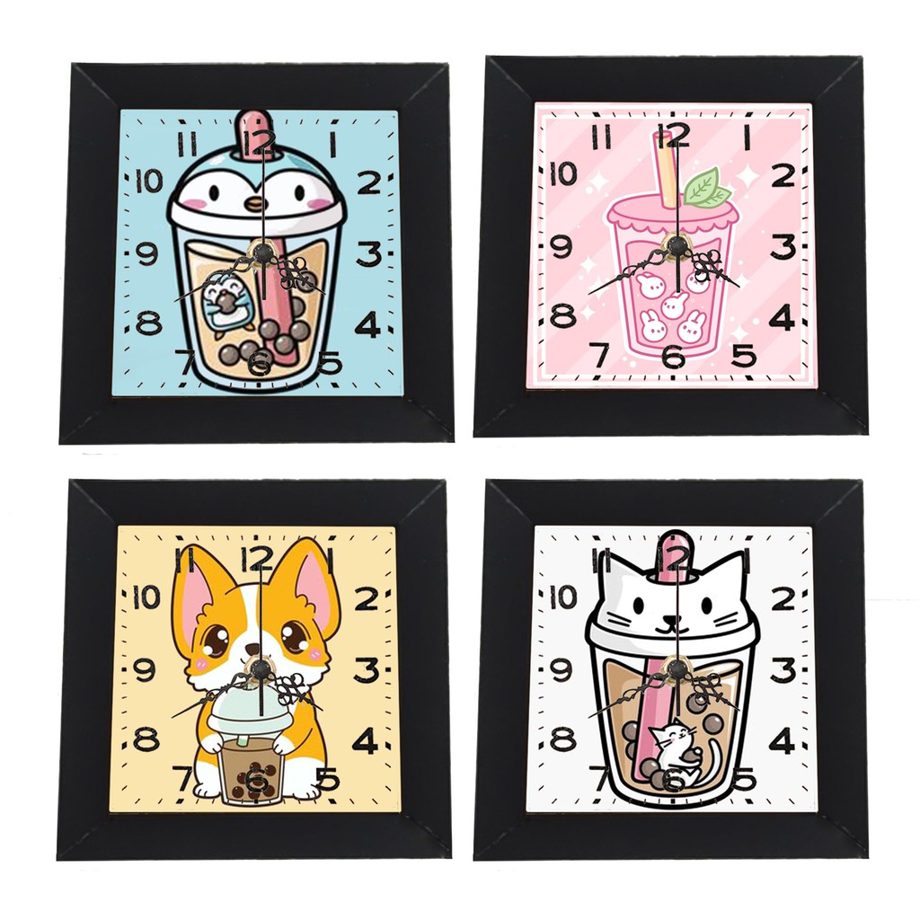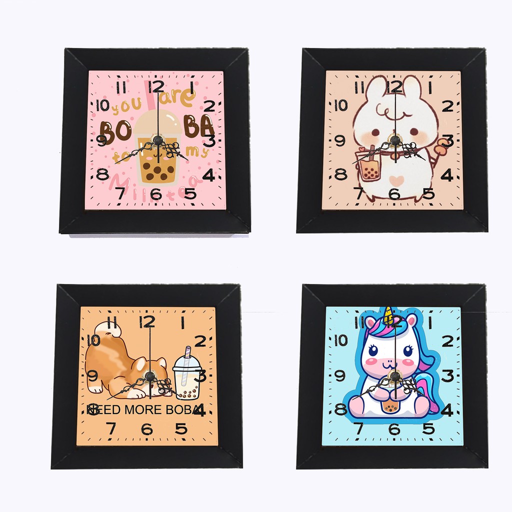Đồng hồ treo tường trà sữa dạng khung ảnh 13x13 cm DHTI4 đồng hồ boba tea cute dễ thương