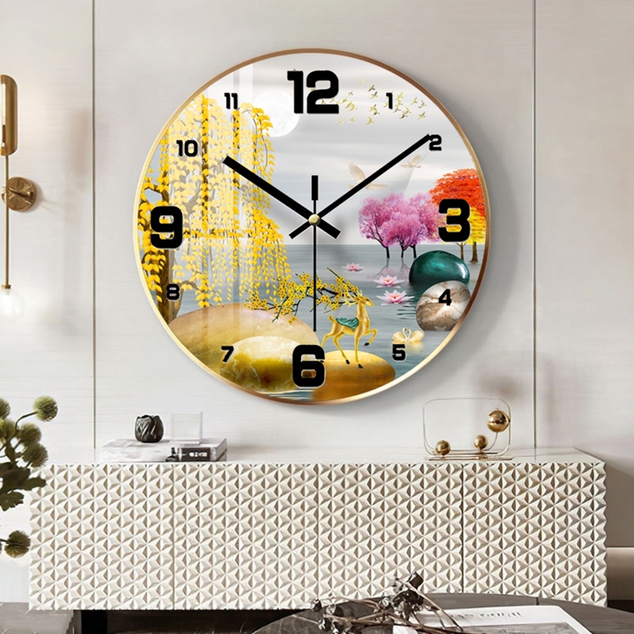 Giới thiệu Đồng Hồ Treo Tường Tráng Gương Hươu Vàng Dưới Ánh Trăng 01