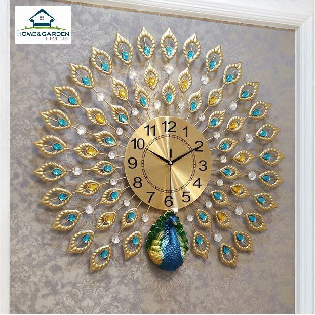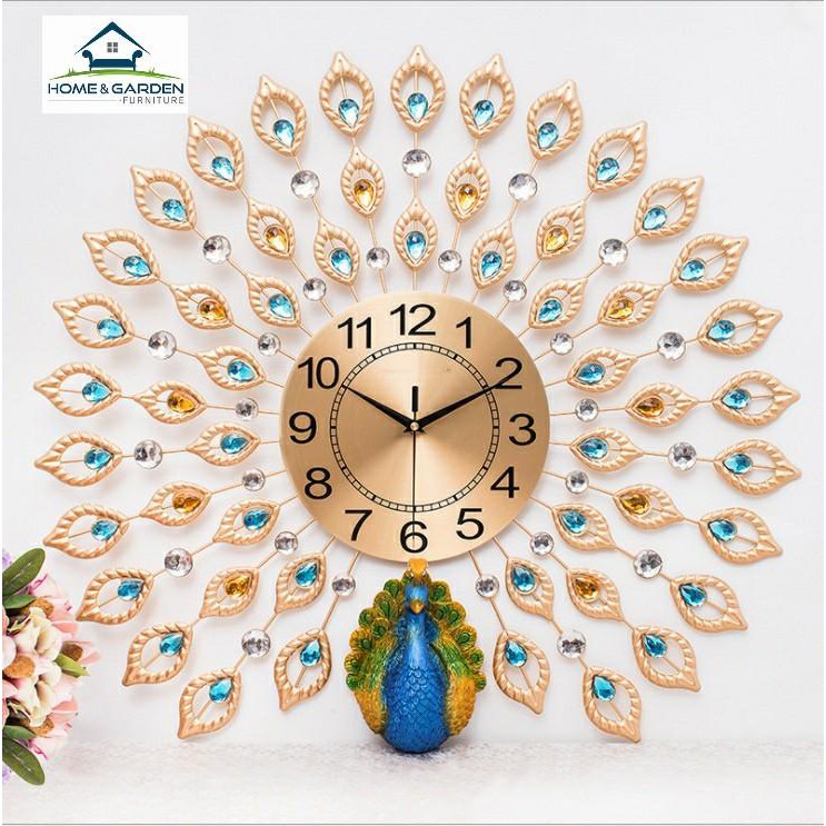 Nhà cửa & Đời sống > Trang trí nhà cửa > Đồng hồ || Đồng hồ treo tường trang trí con công xanh phong cách quý tộc Home and GardenCòn hàng