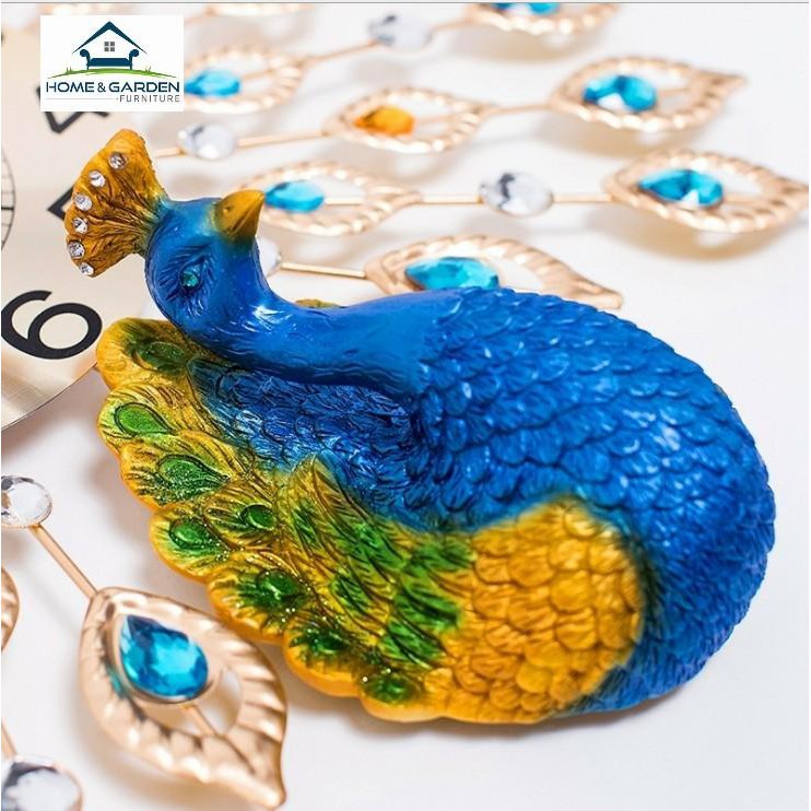 Đồng hồ treo tường trang trí con công xanh phong cách quý tộc Home and Garden