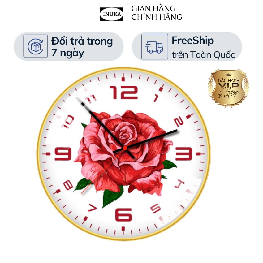 Giới thiệu Đồng hồ treo tường trang trí đẹp phòng khách kim trôi trang trí vintage Hoa Hồng BH 12 tháng inuka.decor.