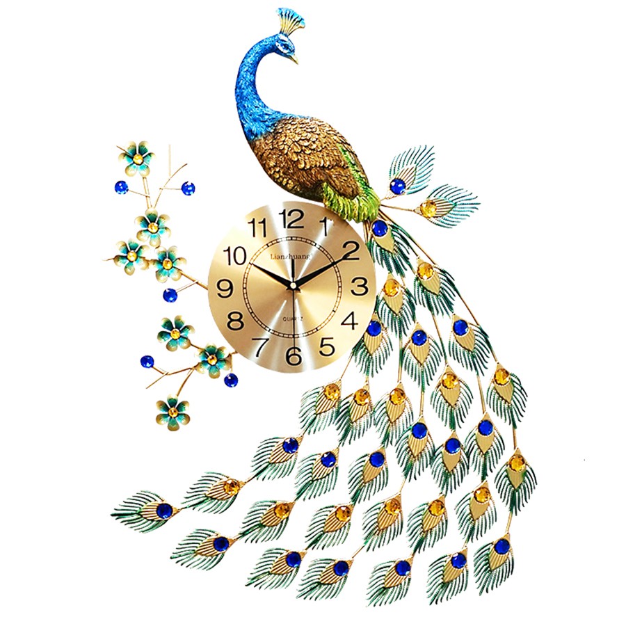 Đồng hồ treo tường trang trí chim công đuôi dài hoàng gia
