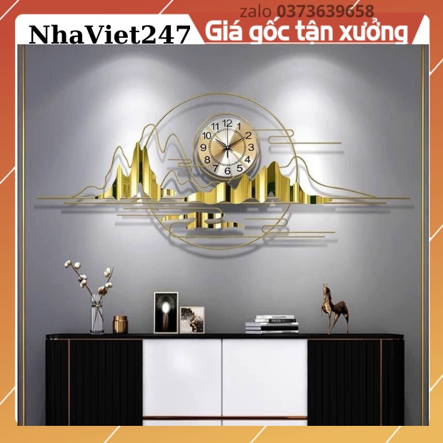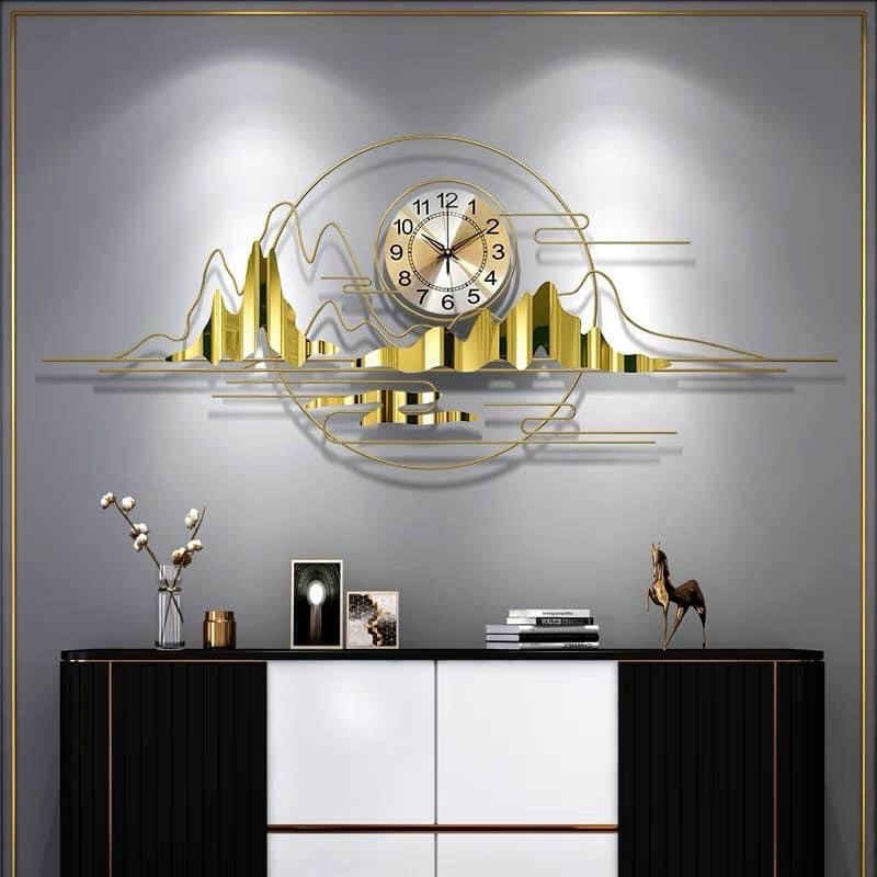 Đồng Hồ Treo Tường Trang Trí Mây Núi-Mã 2203-Kt 150*65cm-đồng hồ tranh decor tường đẹp,giá rẻ-quà tặng ý ngĩa-bh 5 năm