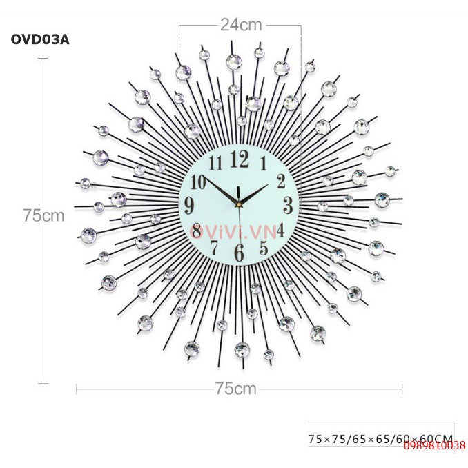 Giới thiệu Đồng hồ treo tường trang trí phòng khách giọt sương giả pha lê cao cấp Ovivi OVD03A