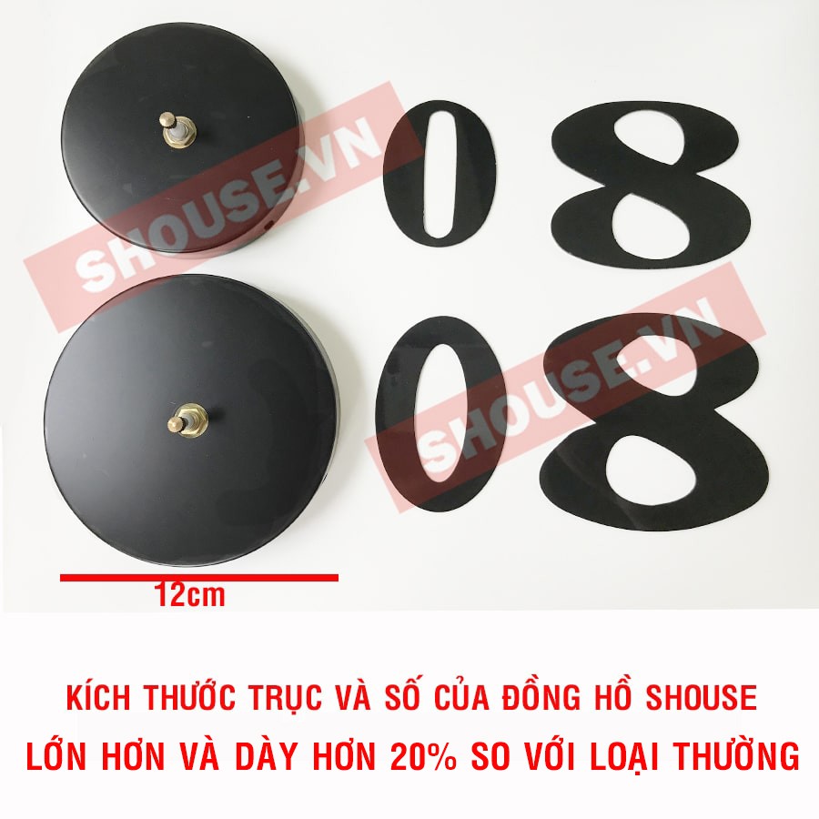 - Trục giữa của đồng hồ 12cm (lớn hơn loại thường 2cm): giúp đồng hồ cân đối và chắc chắn hơn