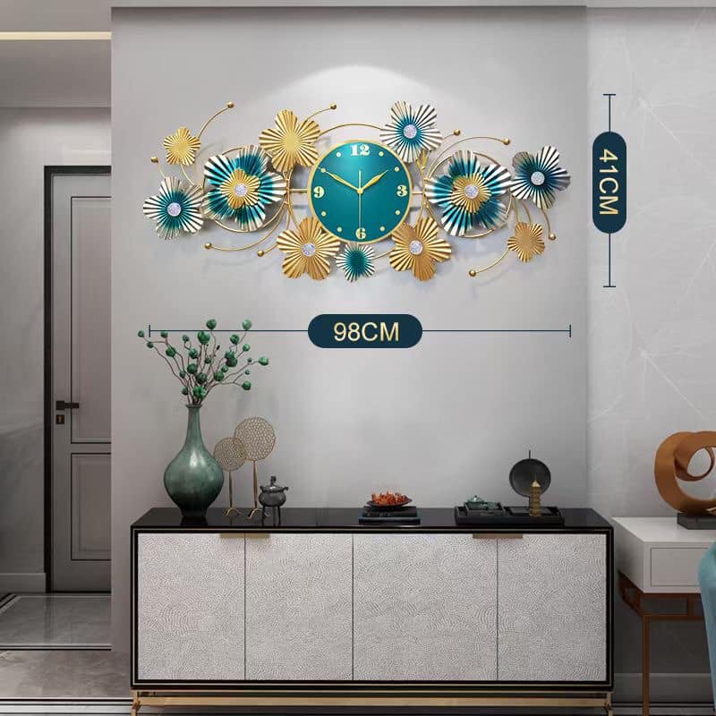 Đồng Hồ Treo Tường Trang Trí mã 2096-Kt 100x45cm-đồng hồ tranh kim loại,decor tường đẹp,giá rẻ-quà tặng ý ngĩa-bh 5 năm
