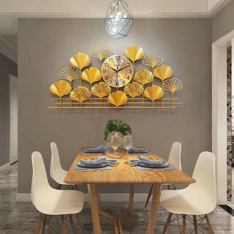 Đồng hồ treo tường trang trí phong cách hiện đại kiểu lá sen vàng Lian2807 chính hãng