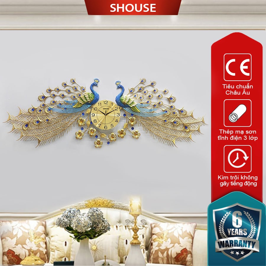 Đồng Hồ Treo Tường Trang Trí con chim công khổng tước Shouse A999 decor đẹp phòng khách kim trôi cao cấp nghệ thuật