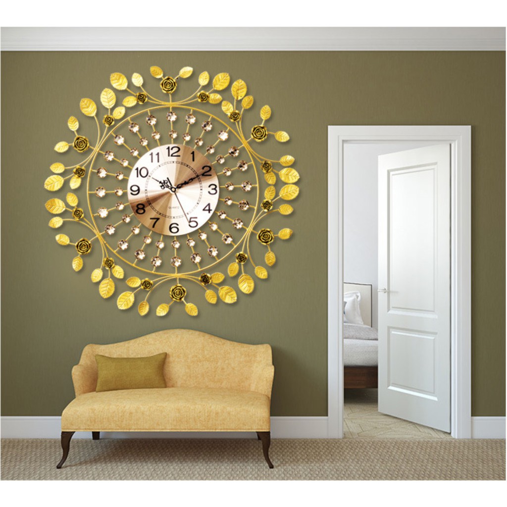 Nhà cửa & Đời sống > Trang trí nhà cửa > Đồng hồ || Đồng hồ treo tường trang trí phong cách Châu Âu Gold Leaves - HanruiOfficalCòn hàng