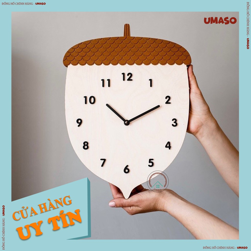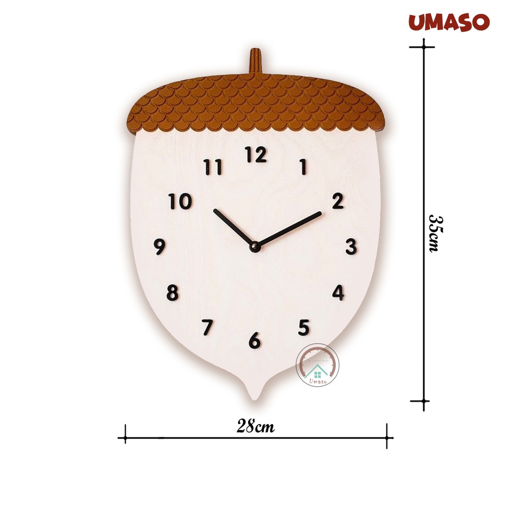 Đồng hồ treo tường trang trí đồng hồ cute hình hạt dẻ UMASO [Tặng kèm móc treo và Pin]