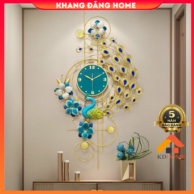 Đồng Hồ Treo Tường Trang Trí Con Chim Công Khổng Tước KD2926 chất liệ thép sơn tĩnh điện 3 lớp không gỉ, kim trôi êm