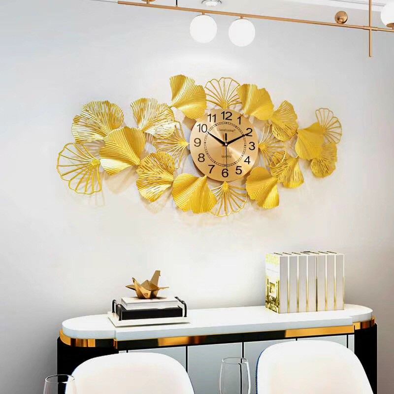 Đồng Hồ Treo Tường Trang Trí -Decor Tường Mã 836-Họa Tiết Lá Kinhgo -Bảo Hành 12 Tháng -Kt 96*50cm