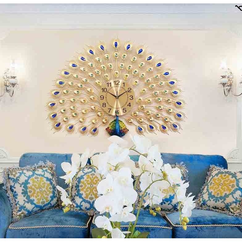 Đồng Hồ Treo Tường Trang Trí Nhà Cửa Họa Tiết Chim Công khoe sắc loại đại 100*70cm-bảo hành 24 tháng