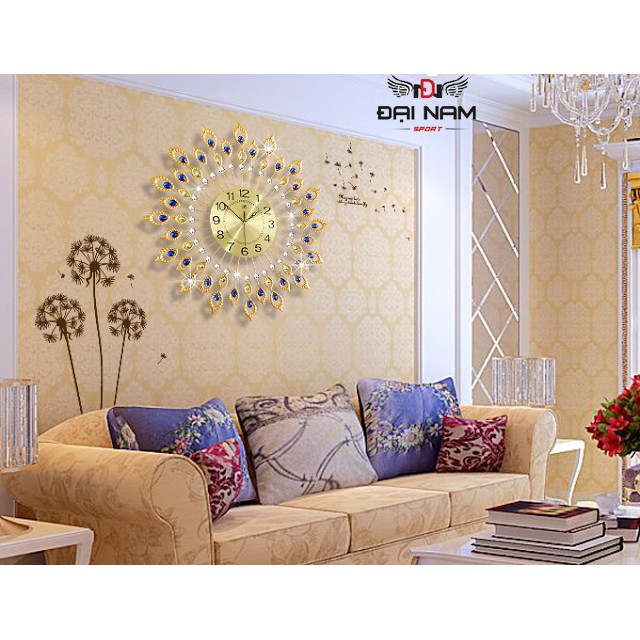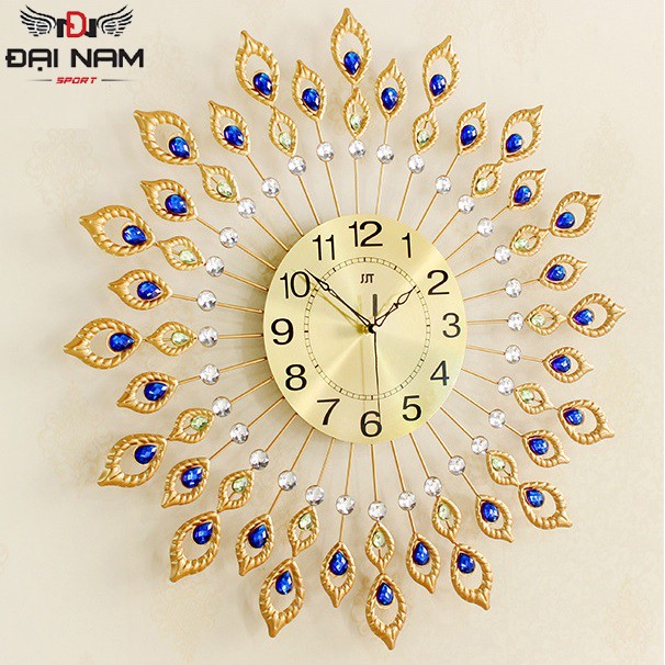 2.Những điểm nổi bật của đồng hồ treo tường trang trí hình đuôi công pha lê.
