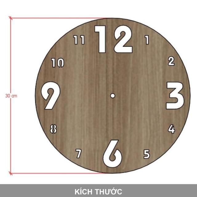 - Chất liệu mặt đồng hồ: Gỗ công nghiệp MDF phủ melamine dày 8mm của các thương hiệu uy tín như An Cường, Mộc Phát nên thân thiện với môi trường, đảm bảo an toàn sức khỏe người tiêu dùng. Lõi gỗ MDF mịn, cứng và chắc chắn. Bề mặt melamine giả vân gỗ sắc nét, bền màu, không thấm nước, khó trầy xước và dễ vệ sinh, lau chùi.