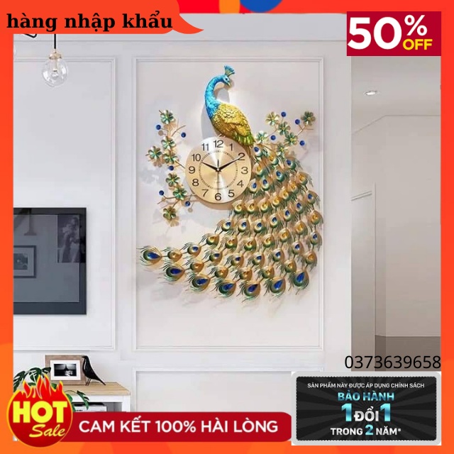 Nhà cửa & Đời sống > Trang trí nhà cửa > Đồng hồ || Đồng Hồ Treo Tường Trang Trí -Decor Tường Mã 916-Họa Tiết Chim Công Đậu Cành Mai -Bảo Hành Đổi Mới 24 Tháng -Kt 78*65cmCòn hàng