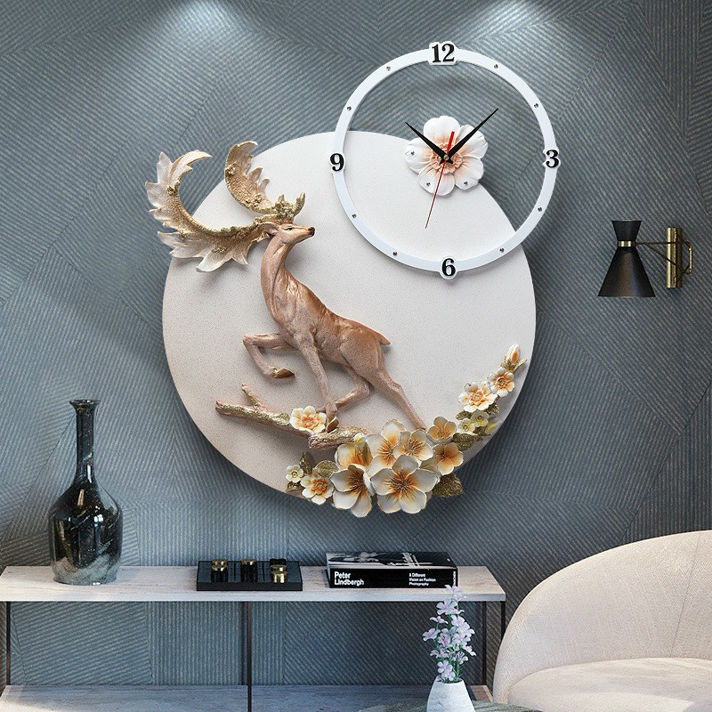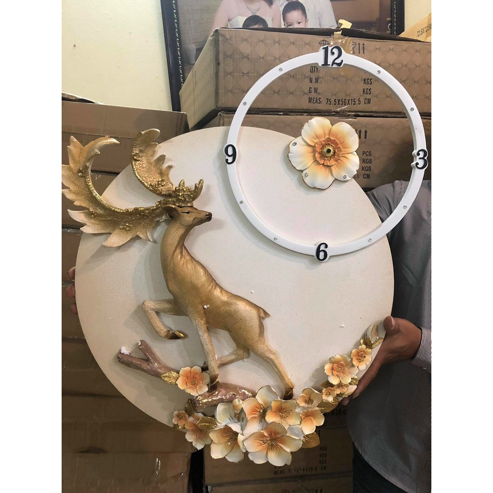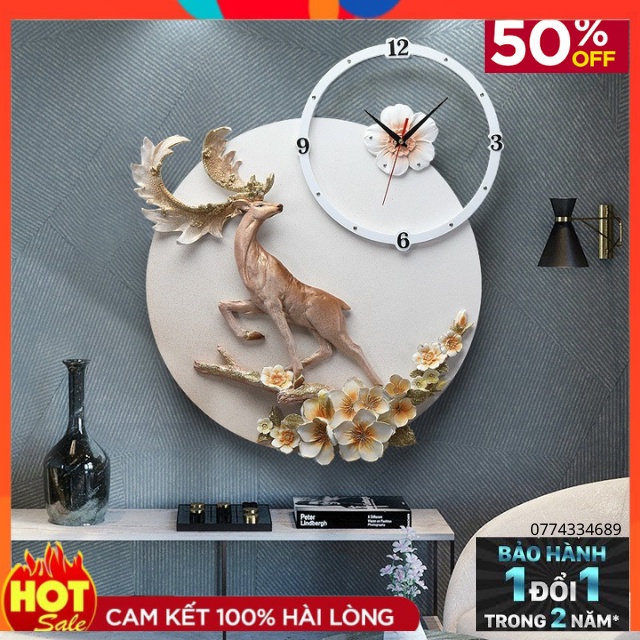 Giới thiệu Đồng Hồ Treo Tường Trang Trí- Chất Liệu Gốm - Họa Tiết Tuần Lộc -Decor Tường Mã 81- Đổi Mới 24 Tháng -Kt 70*50cm