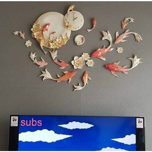 Giới thiệu Đồng Hồ Treo Tường Trang Trí- Chất Liệu Gốm - Họa Tiết Cửu Ngư Vọng Nguyệt -Decor Tường Mã 42- Bảo Hành Đổi Mới 24T