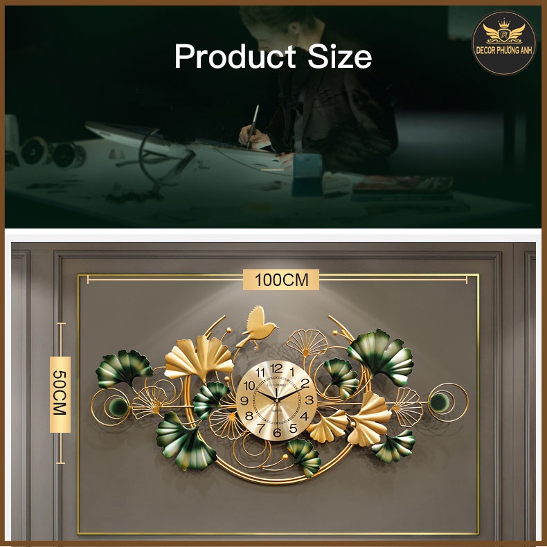 Giới thiệu ❤️ 𝙁𝙍𝙀𝙀 𝙎𝙃𝙄𝙋 ❤️ ĐỒNG HỒ TREO TƯỜNG TRANG TRÍ TRANH HỢP KIM LÁ NGÂN HẠNH