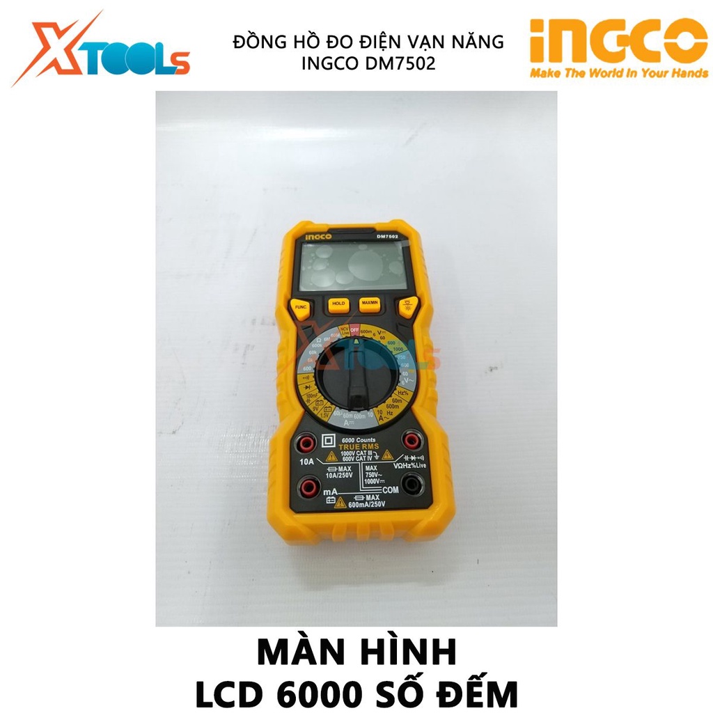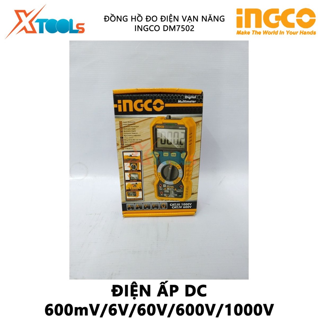 Đồng hồ vạn năng kỹ thuật số INGCO DM7502 | Đồng hồ đo điện vạn năng Màn hình LCD, số đếm 6000 Điện áp DC 600mV/6V/60V/6