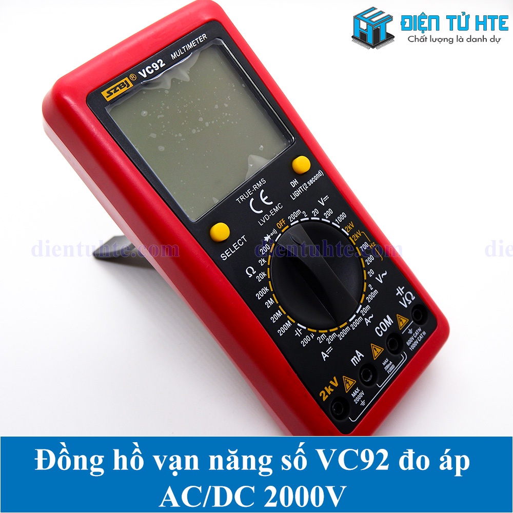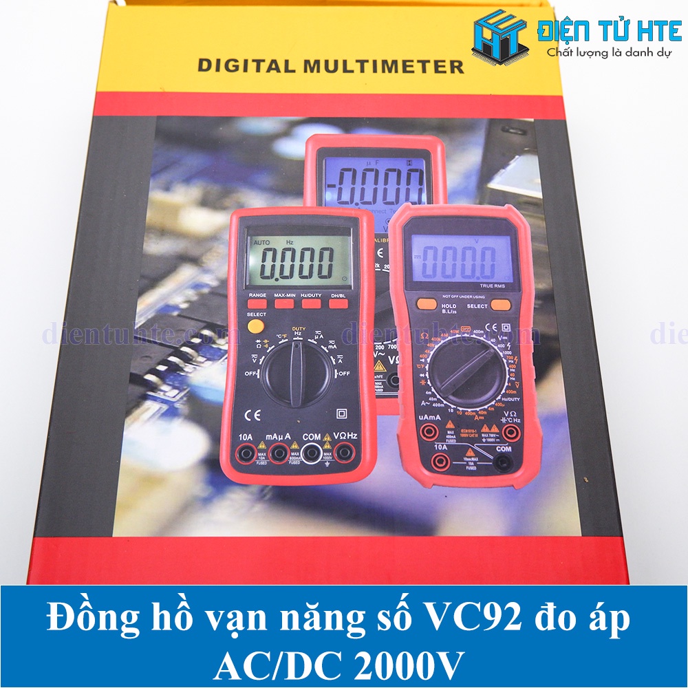 Đồng hồ vạn năng số VC92 đo áp AC/DC 2000VVC92 là dòng đồng hồ vạn năng điện tử với tính năng nổi bật có thể đo được điện áp cao lên đến 2000V AC/DC. Ngoài ra sản phẩm còn hỗ trợ các chức năng đo điện trở, tụ điện, diode, dòng điện mA. Sản phẩm là sự lựa chọn tuyệt vời cho các kỹ sư điện.