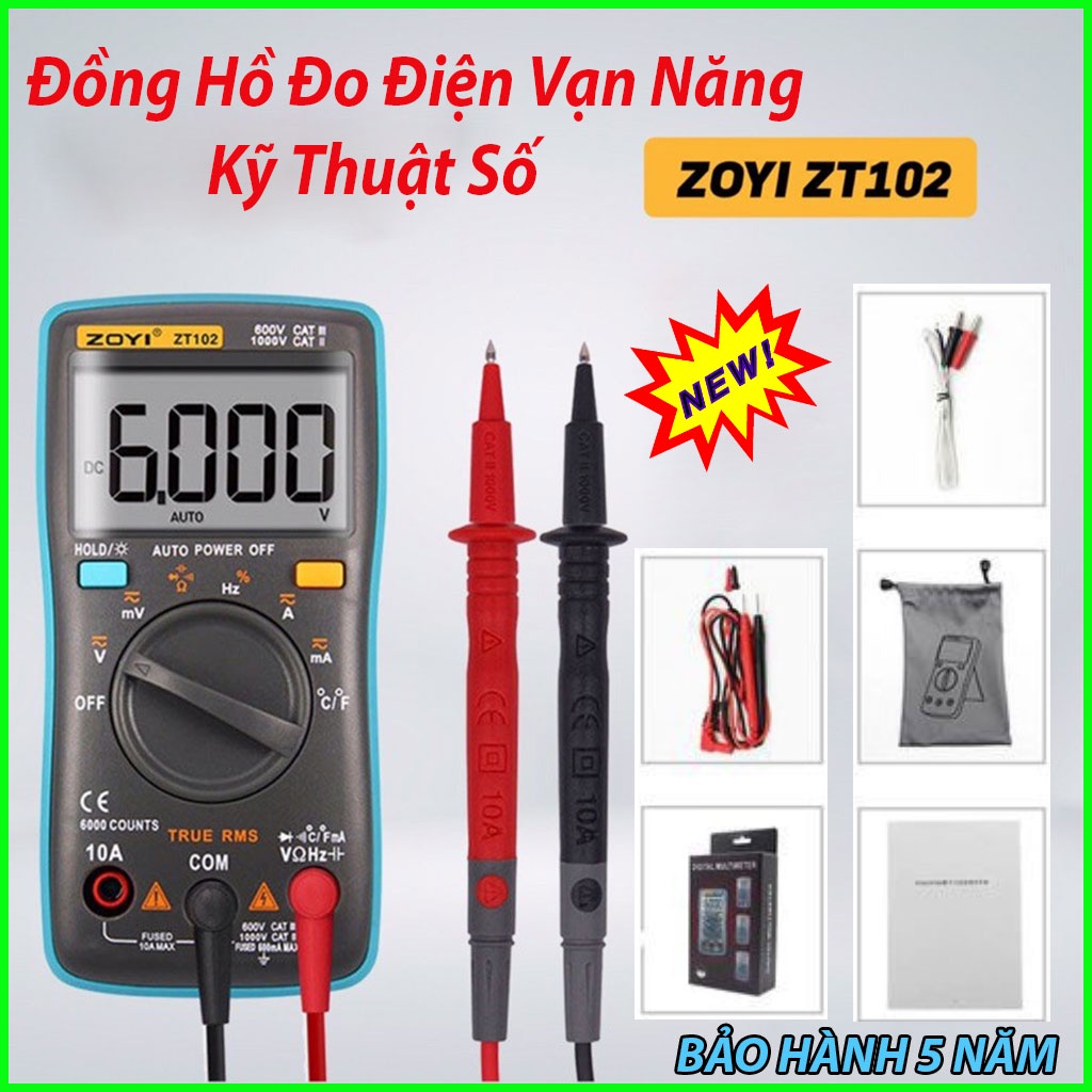 ⭐️𝘽𝙖̉𝙤 𝙃𝙖̀𝙣𝙝 𝟱 𝙉𝙖̆𝙢⭐️Đồng hồ vạn năng số ZOTEK ZOYI ZT102, Máy đo dòng điện AC/DC kỹ thuật số 6000 số